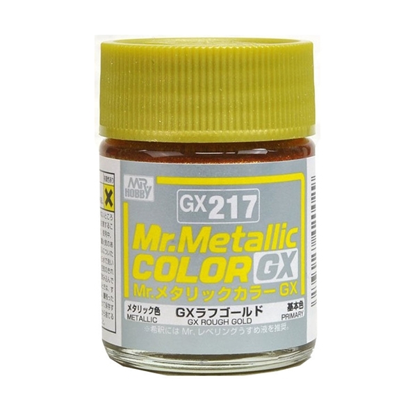 Mr. METALLIC COLOR GX is a metallic color paint series with improved quality of our best-selling Mr. COLOR. It features more vivid colors, excellent hiding power of the base color, and smoother and stronger coating film. We were able to produce this high quality paint without the use of toluene.